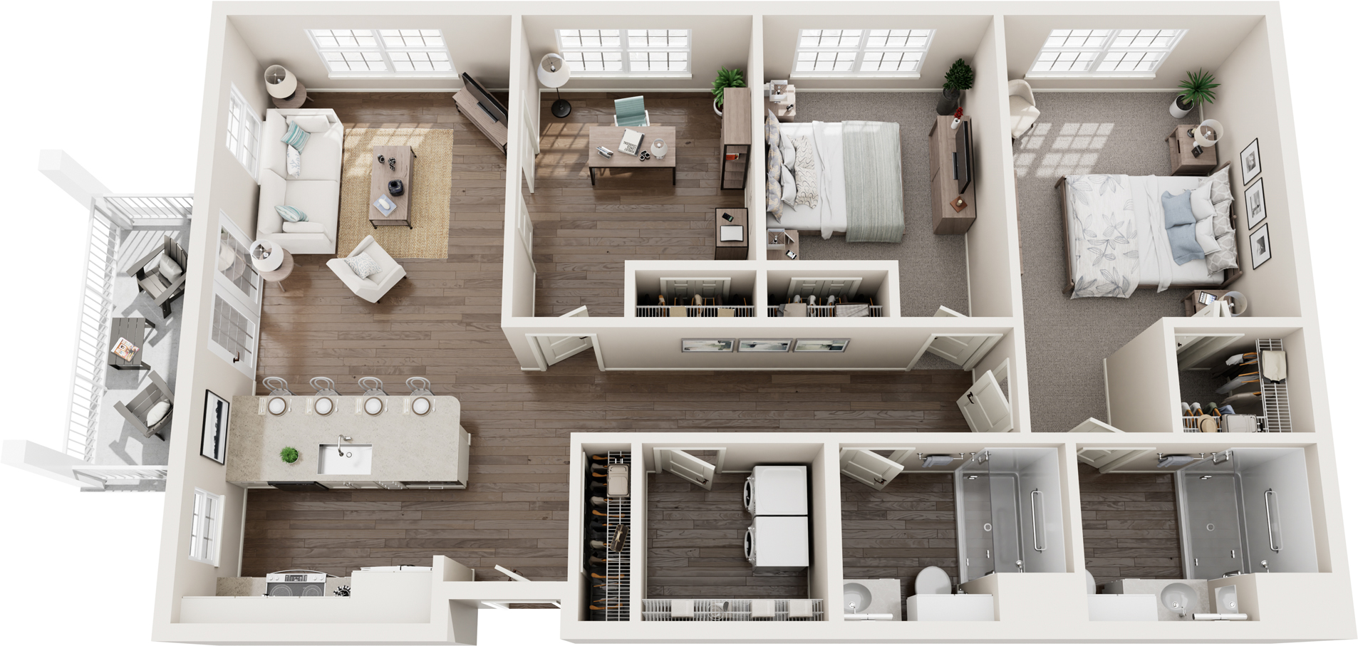 - Hemlock: 2 Bedrooms, 2 Bathrooms, 1202 – 1210 square feet